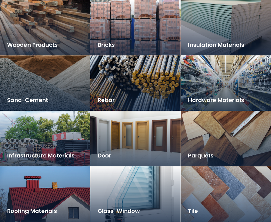 Structural Materials – Cement, steel, rebar, and concrete for solid foundations. Masonry Products – Bricks, blocks, and mortar for durable walls and structures. Insulation Solutions – Advanced thermal, water, and soundproofing materials. Finishing Materials – Doors, windows, tiles, and cladding for enhanced aesthetics and functionality.